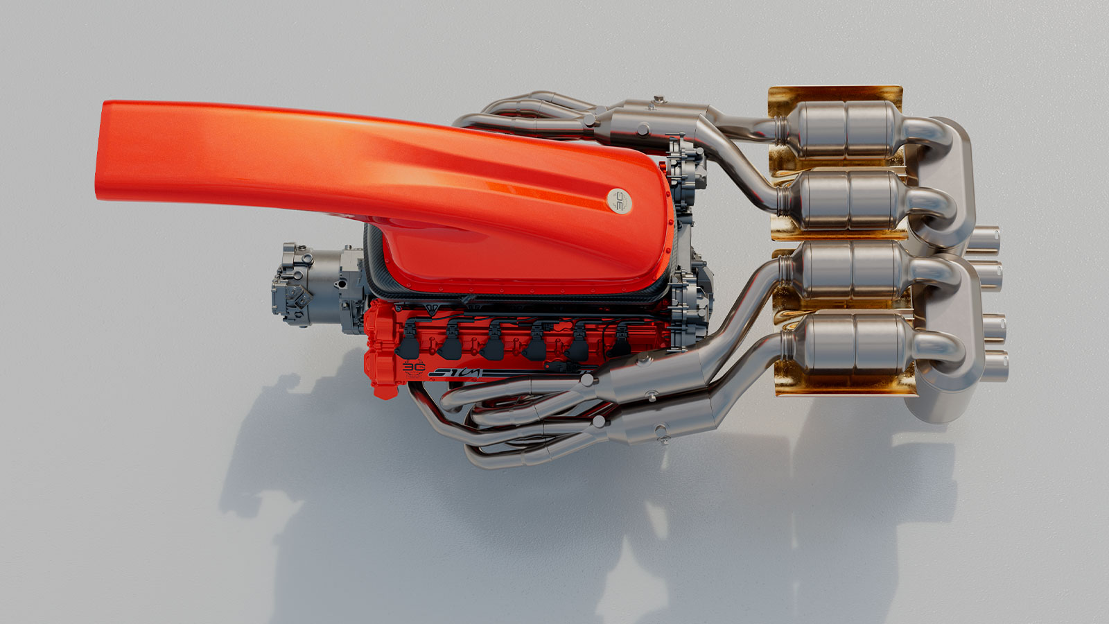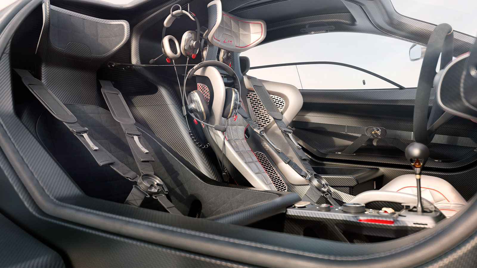 El corazón del S1 LM es un V12 atmosférico de 4,3 litros desarrollado en exclusiva, con componentes más ligeros y una relación de compresión más alta que le permiten superar los 700 CV y girar hasta 12.100 rpm.