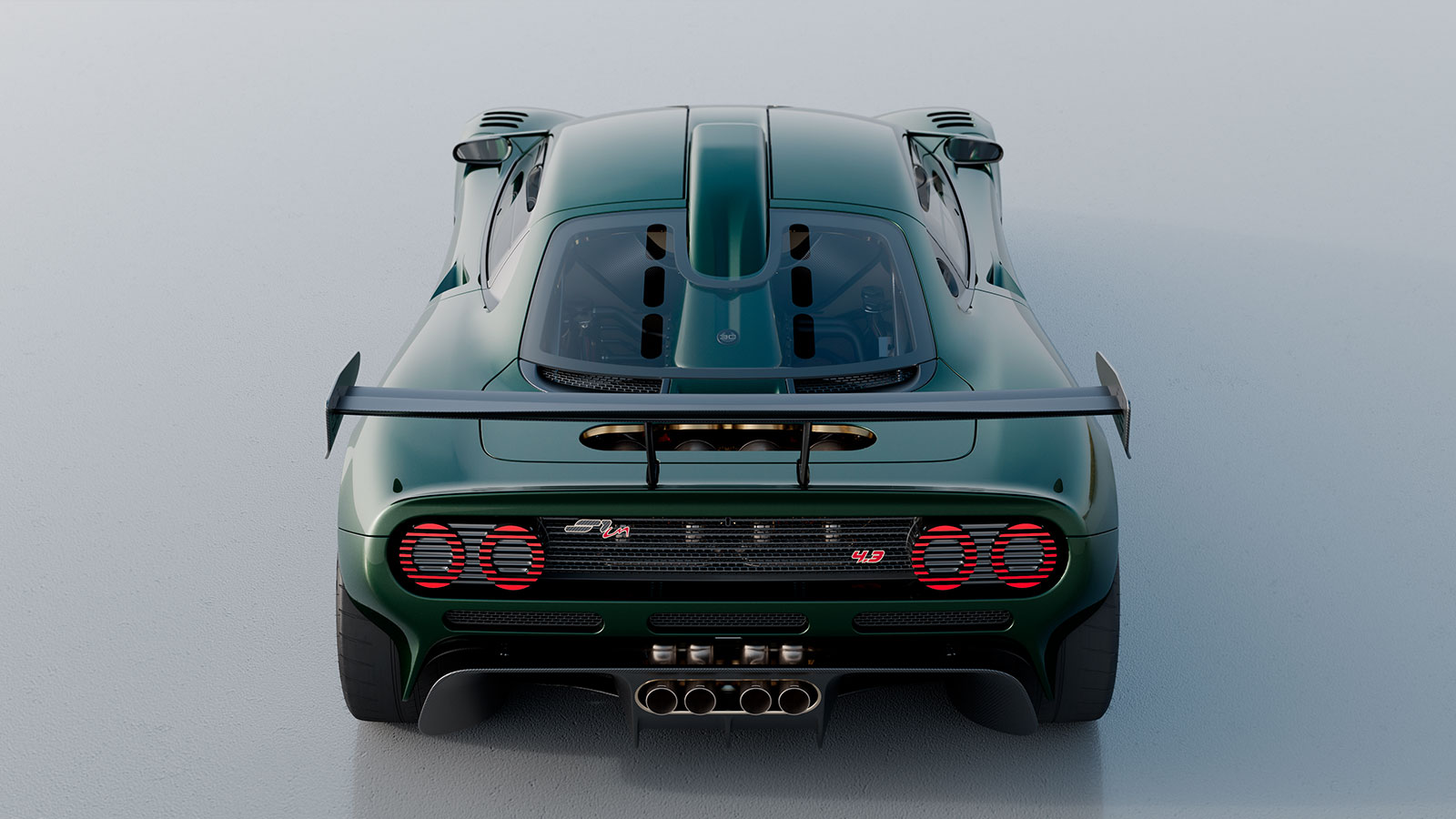 El S1 LM está basado en el T.50, pero estrena una carrocería completamente nueva fabricada en fibra de carbono ultraligera. Los guiños al McLaren F1 GTR son evidentes: toma de aire en el techo, escape cuádruple central y un alerón trasero de doble elemento, además de los pilotos traseros dobles y las entradas de aire centrales en el capó.