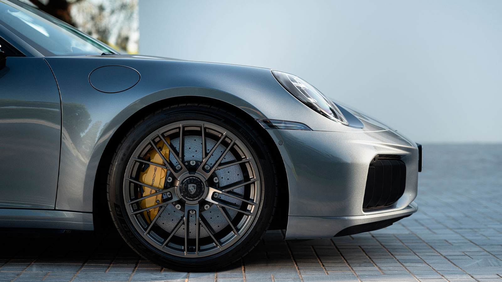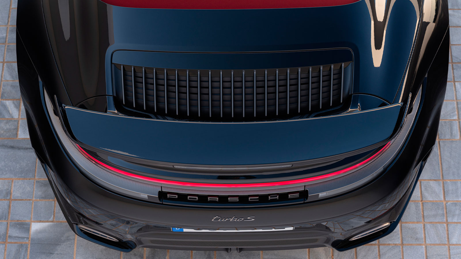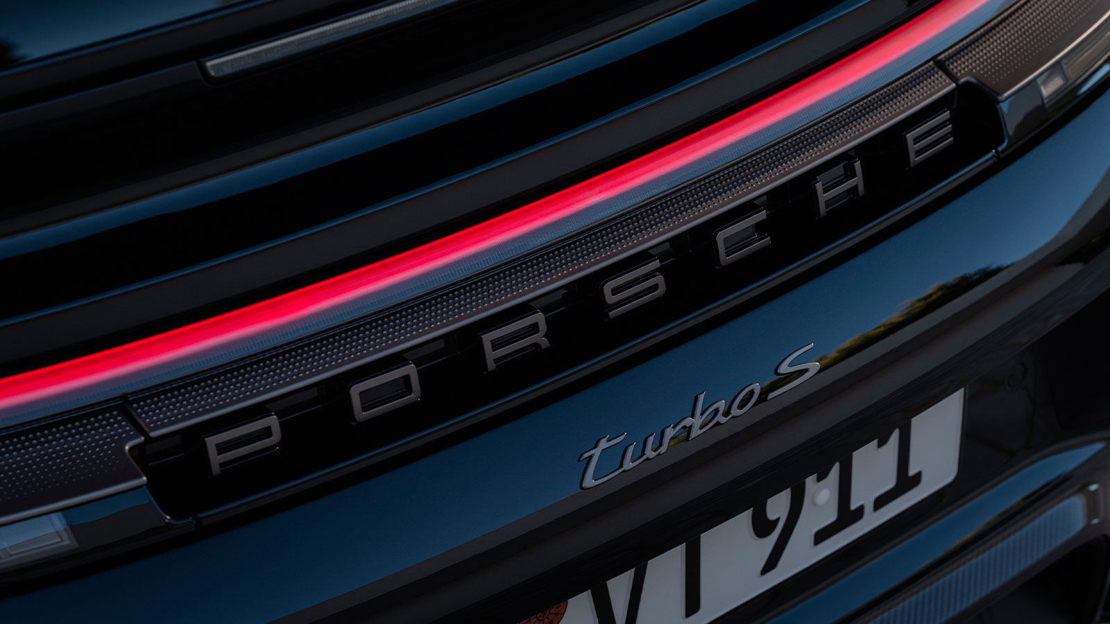 El nuevo Turbo S se distingue por un diseño más musculoso y detalles exclusivos en color Turbonite, reservados para las versiones Turbo. La carrocería es más ancha que la de un Carrera, incorpora llantas de bloqueo central y un escape deportivo de titanio.