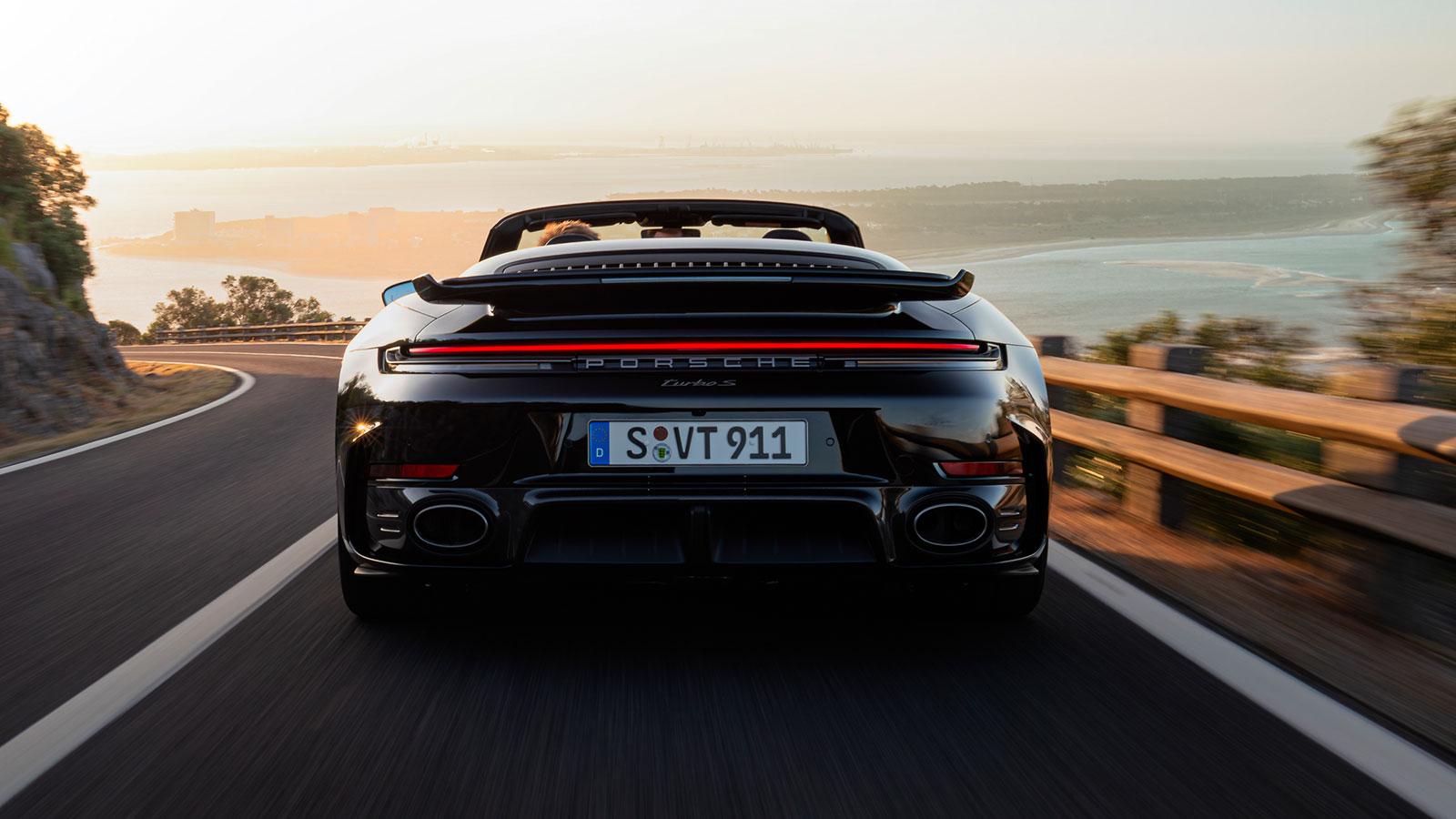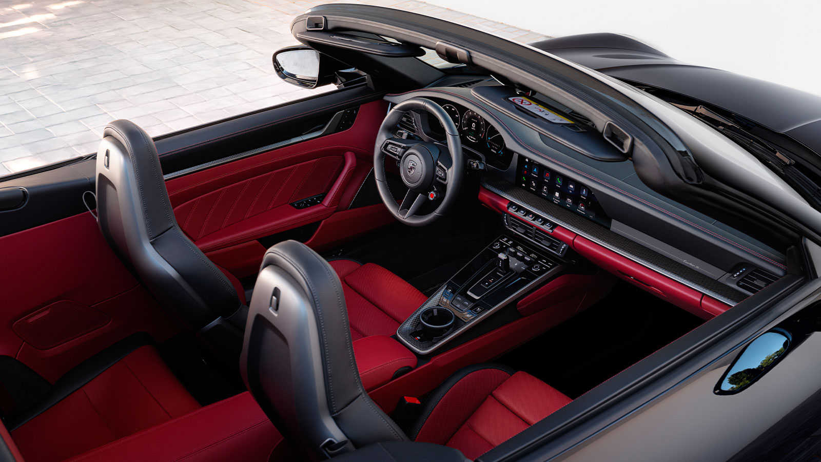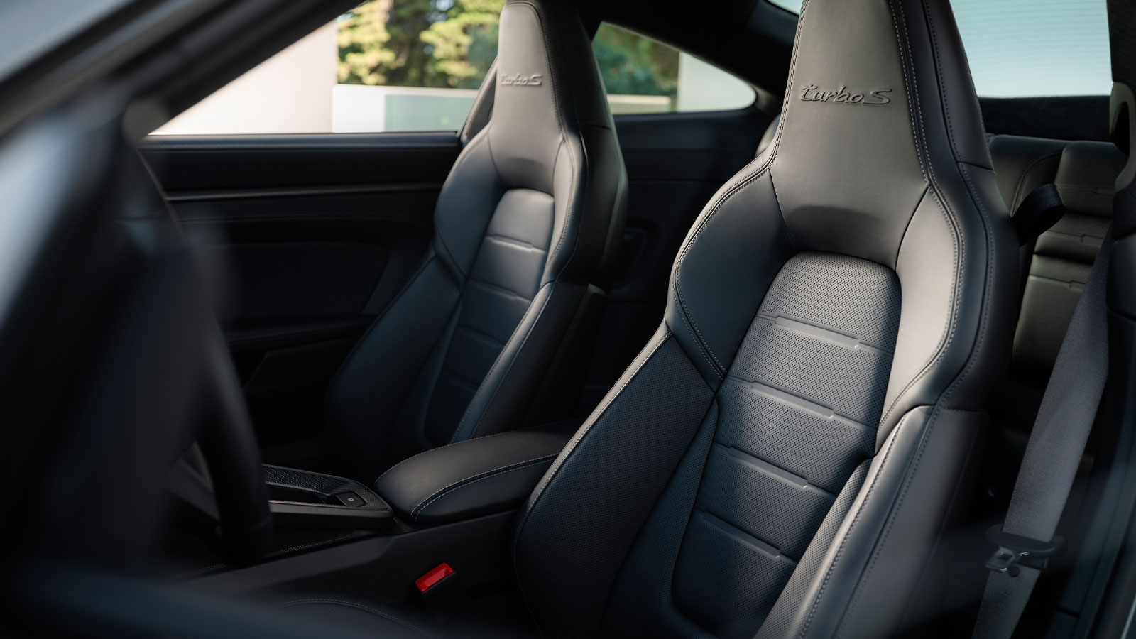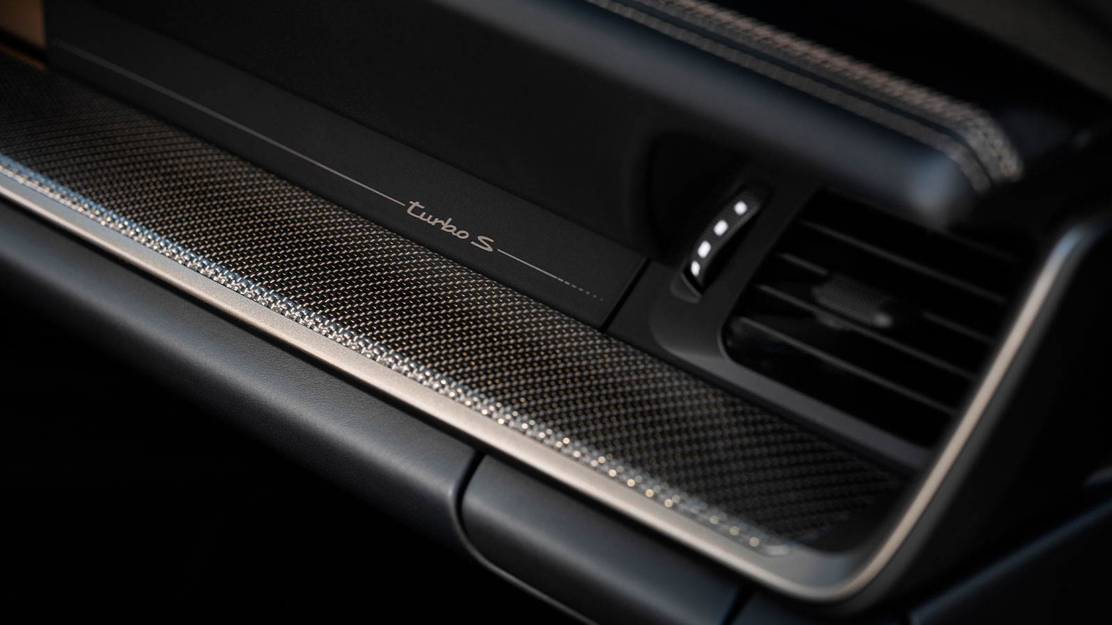 Dentro, el 911 Turbo S ofrece una atmósfera exclusiva con inserciones en fibra de carbono, tapicería premium y el logo Turbo S en reposacabezas y cinturones. De serie equipa asientos deportivos ajustables en 18 posiciones, el Sport Chrono Package, iluminación LED HD Matrix y un sistema de escape con sonido desarrollado específicamente para este modelo.