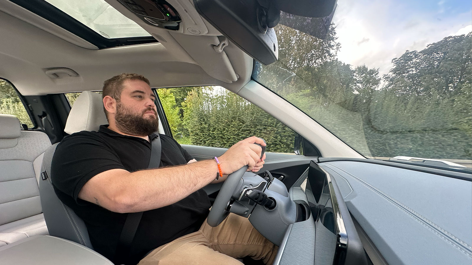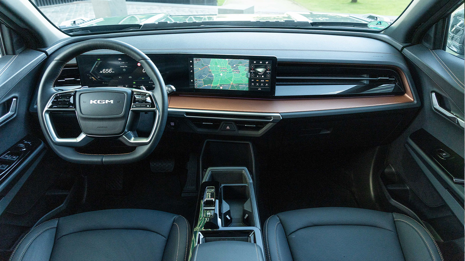 En el interior se repite la fórmula “Slim & Wide” que hemos descrito en el Torres. De hecho, son muy parecidos, con la misma pantalla panorámica de 12,3 pulgadas y el sistema multimedia Athena 2.0. La consola flotante añade cargador inalámbrico y varios huecos de almacenamiento. La segunda fila destaca por el espacio para piernas y la posibilidad de reclinar o deslizar los asientos.