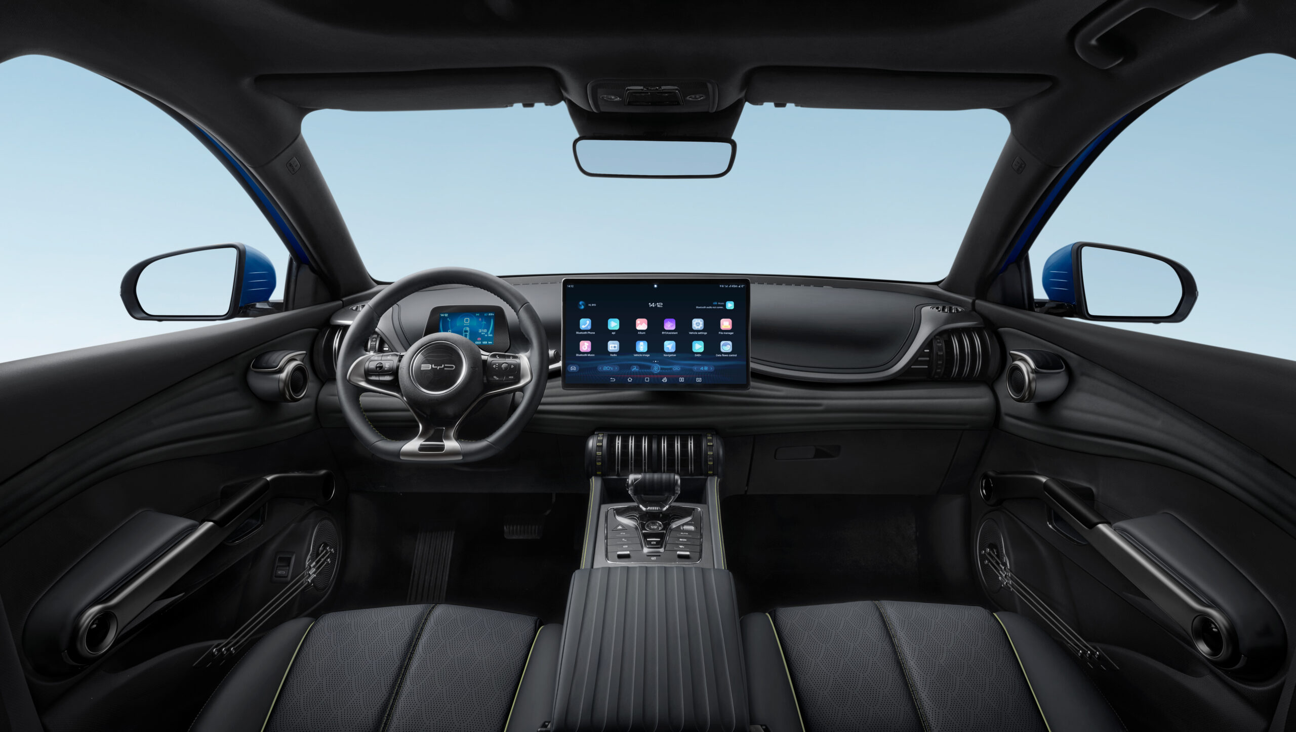 El interior del BYD Atto 3 es espacioso y bien diseñado, con materiales de calidad y una distribución ergonómica. El habitáculo cuenta con detalles de acabados modernos y tecnología de punta que garantizan un viaje cómodo y agradable.